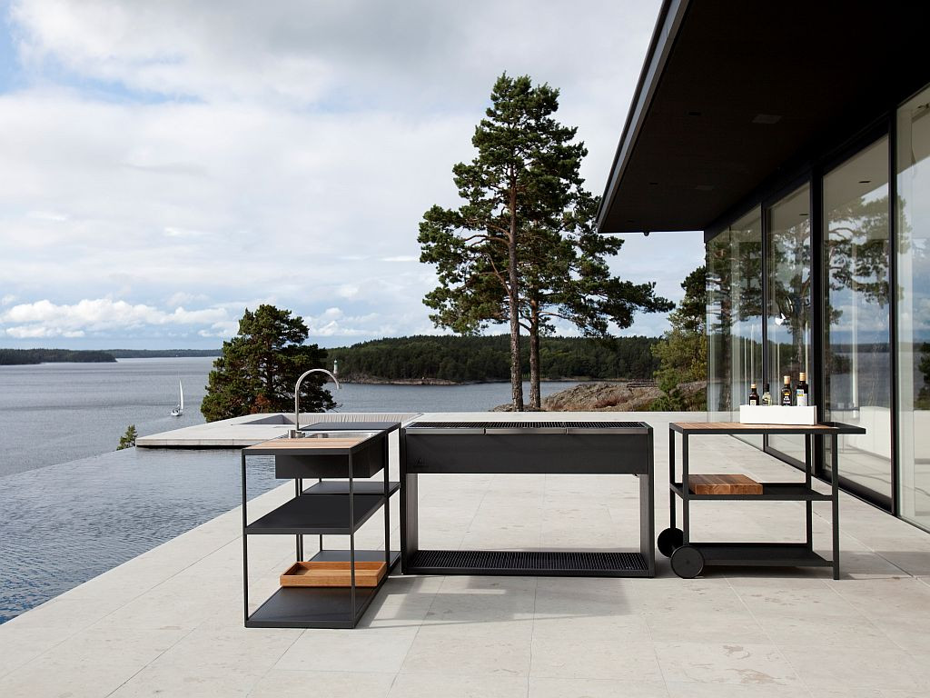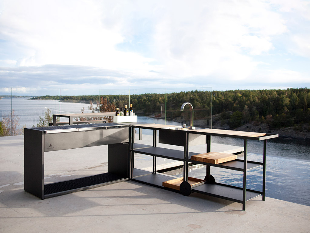 Outdoor-Küchen gehören zu den Highlights im Programm der Schweden . Sie liefern modular aufgebaute Gartenküchen, die nach Bedarf bestückt werden können. Den Grundstock bildet dabei jeweils ein BBQ Grill. Er wird aus Edelstahl gefertigt und mit einem Rostschutzüberzug aus der Autoindustrie veredelt. Quadratische Grillstäbe sorgen für die gute Wärmespeicherung.