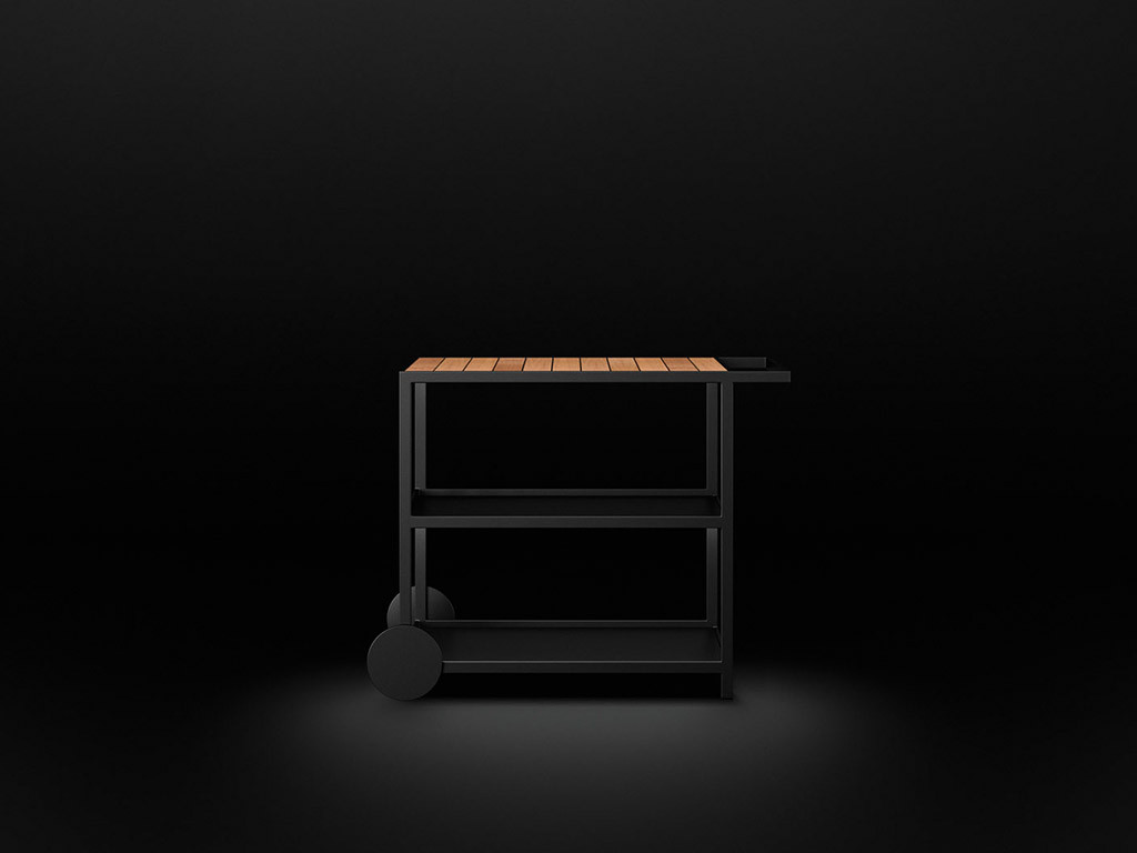 Für den Entwurf der BBQ-Serie zeichnet das renommierte Büro ›Broberg & Ridderstråle‹ verantwortlich. Uns begeistert die schwerelose Linie dieser Funktionsmöbel, die man flexibel anordnen kann. Oben: der Röshults Garten Trolley. Nicht nur chic, auch gut durchdacht.