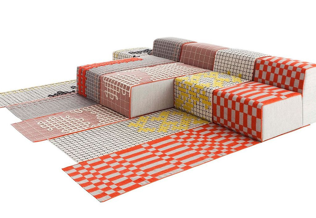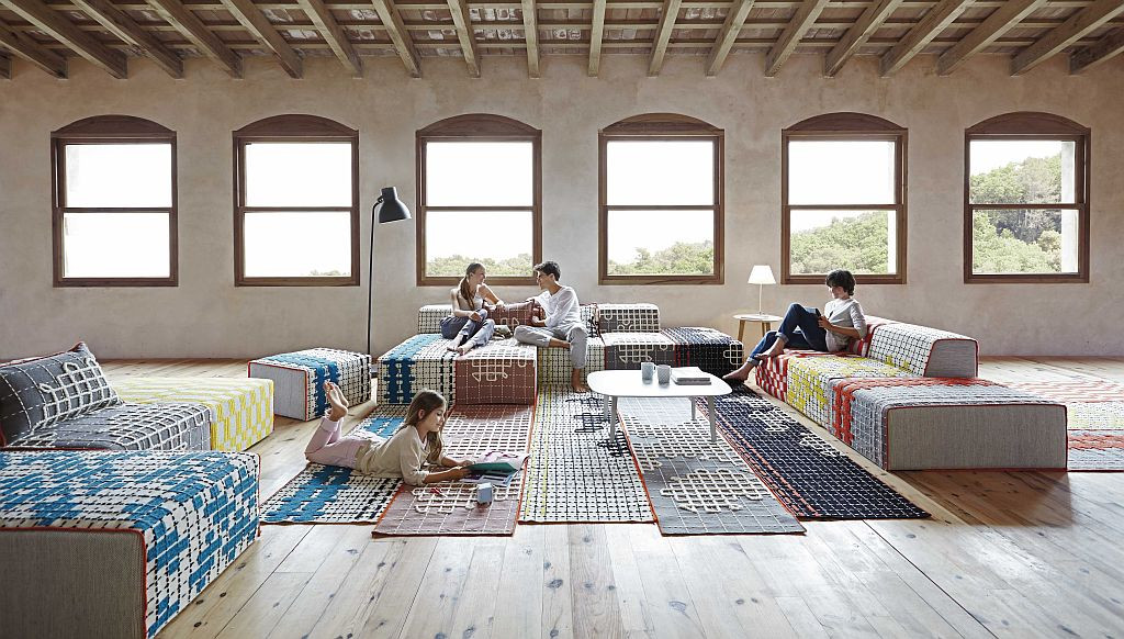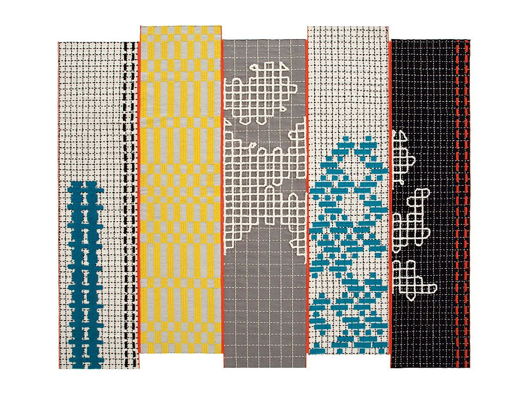 Und das gilt – im allerfeinsten Sinne – auch für die Serie ›Bandas‹ von Patricia Urquiola. Statt größere und kleinere Teppiche zu schaffen, hat die Designerin einfach ein System entwickelt, bei dem man die Teppichform mitsamt Mustern in unzähligen Varianten selbst bestimmen kann.