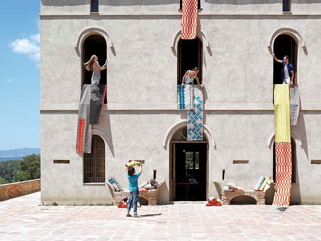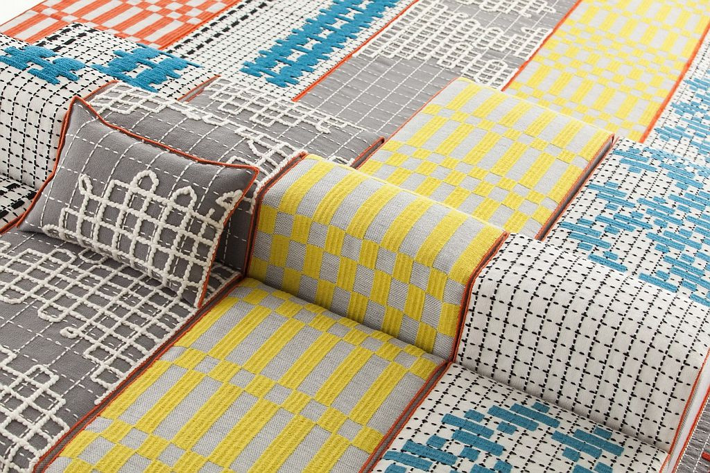 Sämtliche Textilien werden in einem kleinen, indischen Städtchen in Handarbeit bestickt. Und es ist Teil der gedankenvollen Arbeit von GAN und Urquiola, dass jede Naht und jedes Muster zu den Fähigkeiten der Gemeinde passt – der Ort war von Leerstand und Arbeitslosigkeit geprägt, konnte durch die Fertigung der 2014 entwickelten Bandas-Kollektion aber wiederbelebt werden.