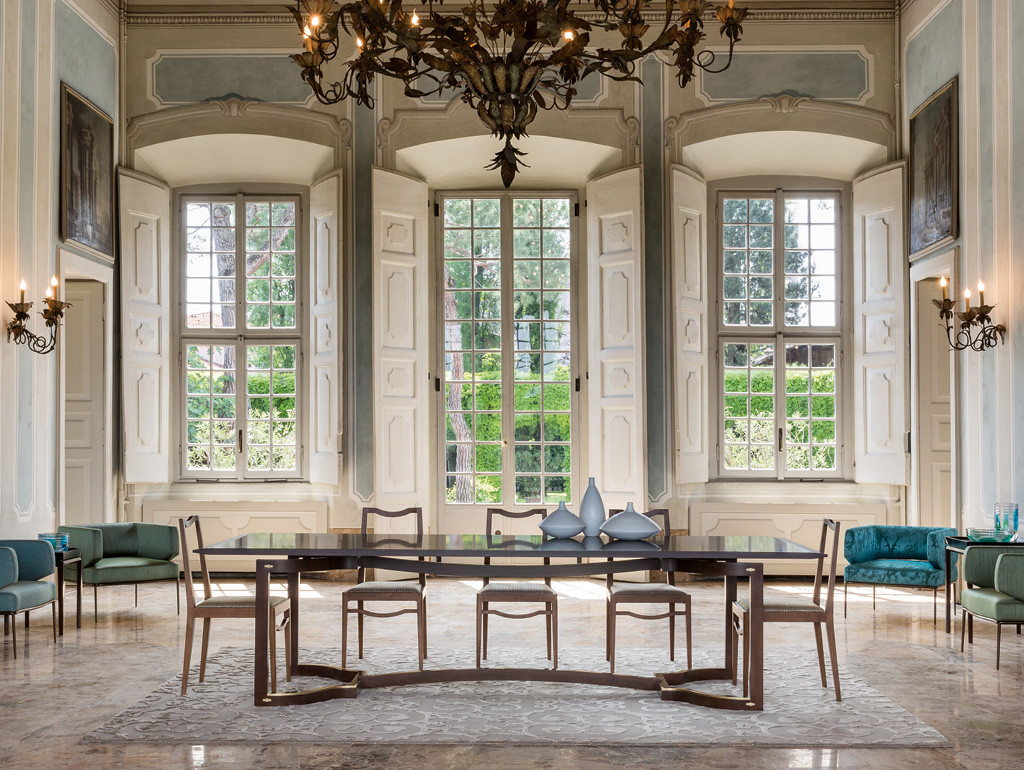 Und die Fachwelt staunte nicht schlecht. Ist es ›Rubelli‹ doch aus dem Stand heraus gelungen, mit einer außergewöhnlich luxuriösen Kollektion in den Olymp des italienischen Möbeldesigns vorzudringen. Mehr als 40 verschiedene Stücke – darunter Tische, Stühle, Polstermöbel, Vitrinen sowie Accessoires – umfasste die Premieren-Kollektion. Fangen wir gleich bei den Stühlen an.
