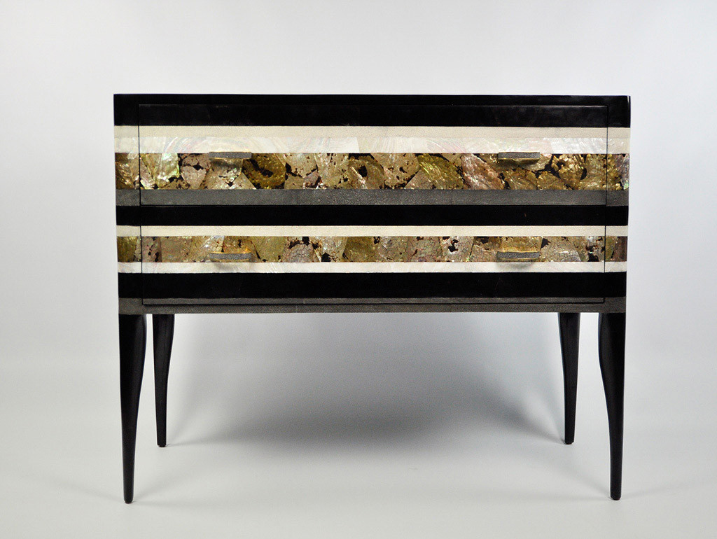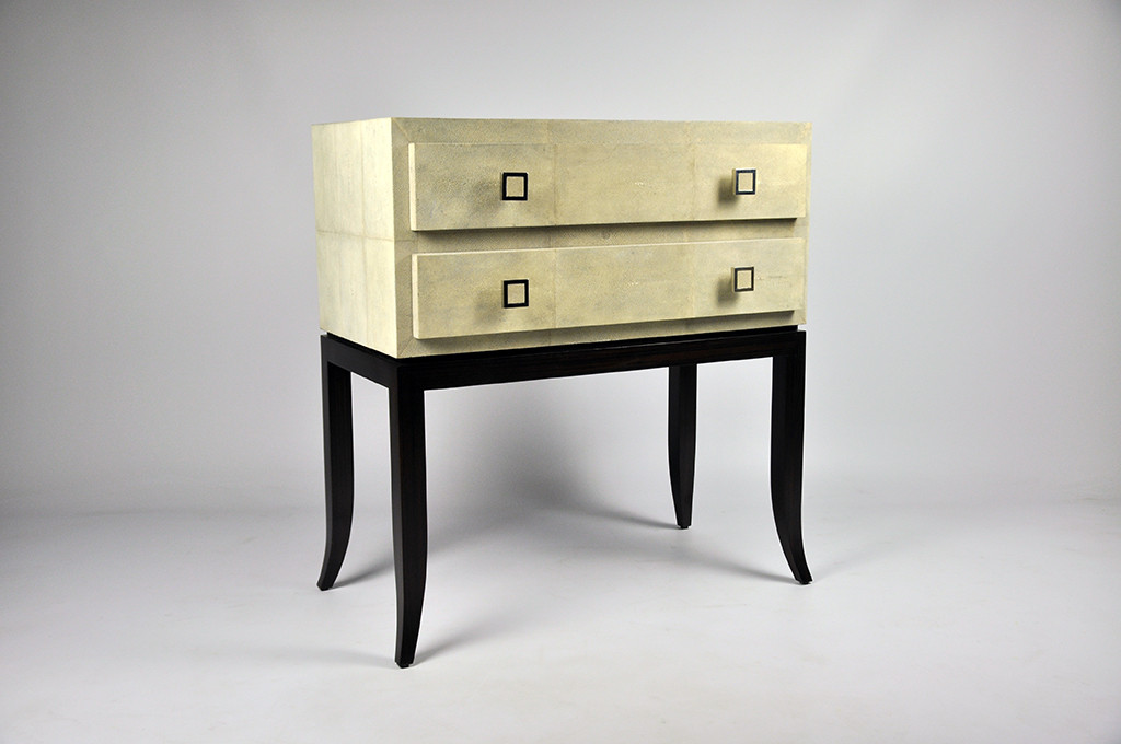 Hat man ein paar Modelle von Ginger Brown gesehen, erkennt man die Handschrift dieser Manufaktur unter Tausenden wieder. Denn zu den Materialien kommt ein Design, das einfach ungesehen ist. Klassisch, aber auch ein bisschen frech. Zeitlos, aber dann auch wieder glamourös. Ein Beispiel dafür: die Kommode CH Reef mit Galuchat-Intarsien auf schwebenden Füßen.