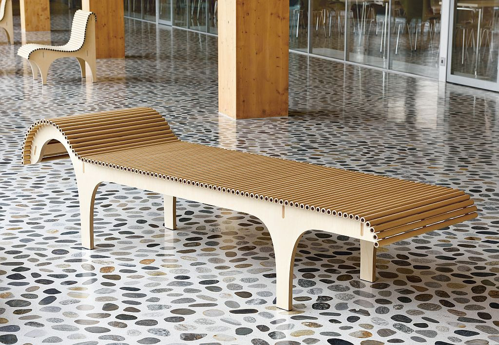 Entsprechend sorgsam ist die Herstellung. ›wb form‹ lässt die Kartonrollen in Japan durch Urethanharz mit robuster Stabilität ausstatten; anschließend werden sie nach Italien verschifft. Denn hier – und nur hier – ist es gelungen, die Rollen ohne stützende Metalle und mit wenigen, nicht sichtbaren Schrauben auf die Holzgestelle aufzubringen. Wahrhaft – Shigeru Ban!